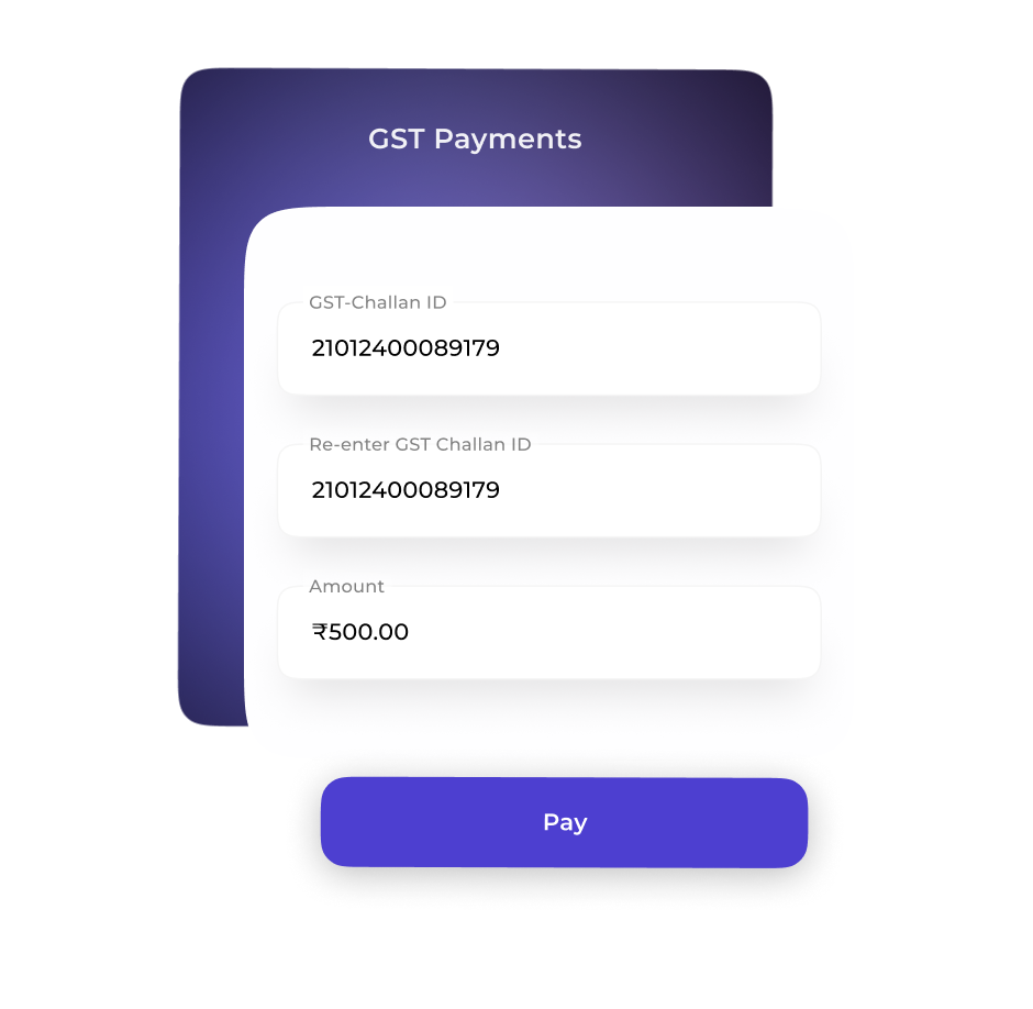 Upload your challans details and pay GST in seconds.