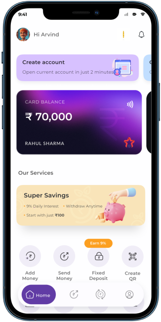 Open an account in a few minutes by verifying your aadhaar, pan card and business details.